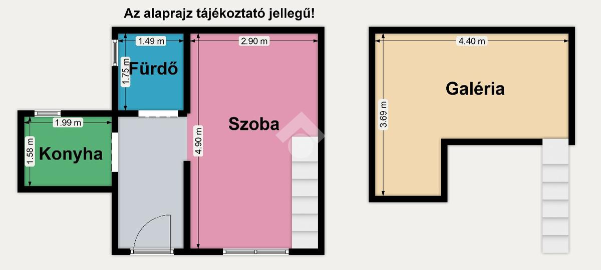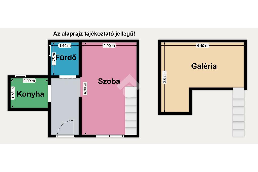 A lakás praktikus elrendezésű, amelyhez egy kb. 15 m²-es galéria is tartozik, így a hasznos tér jelentősen megnövekszik. A galéria kényelmes hálórészként használható, alatta 190 cm, felette 180 cm a belmagasság.